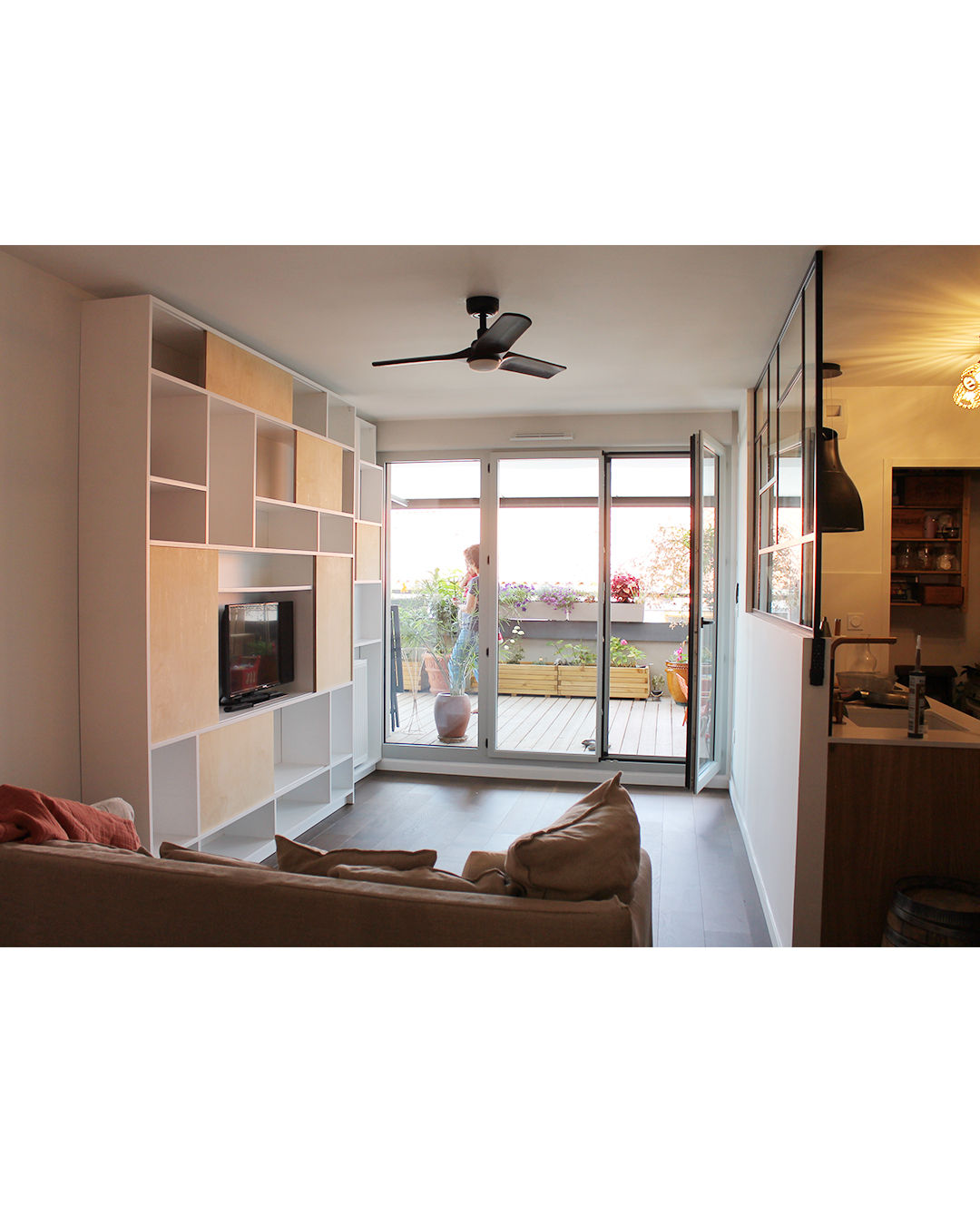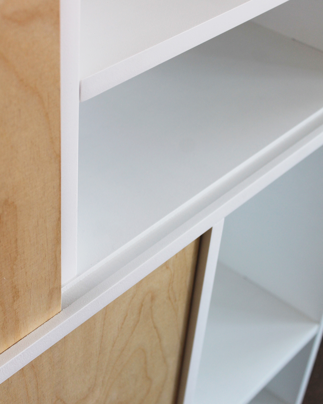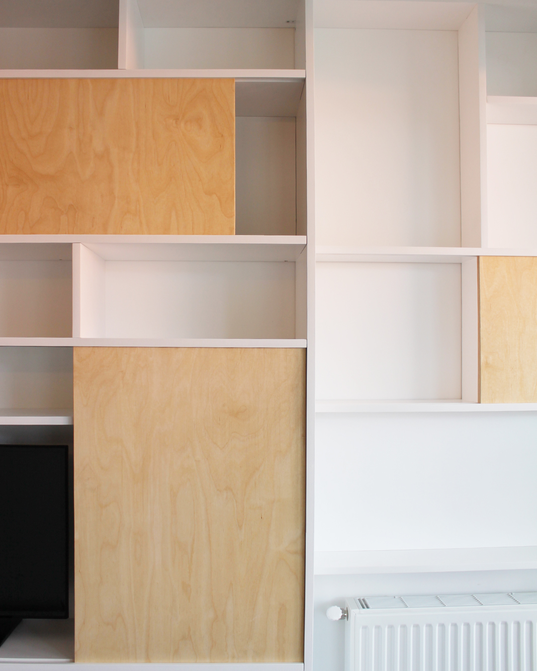 Portes coulissantes : contreplaqué bouleau, finition huile cirée naturelle